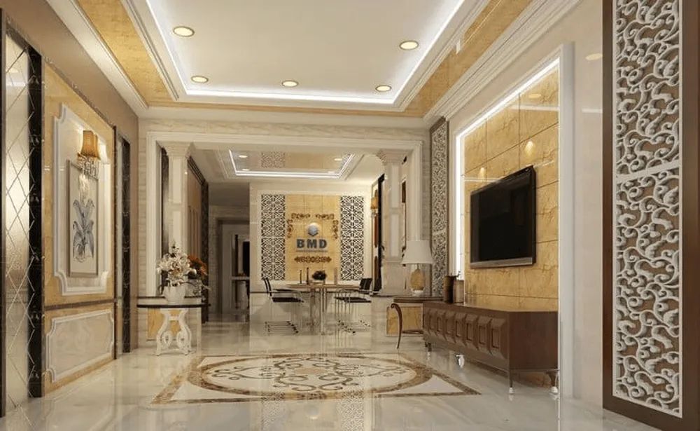 Những công trình thiết kế nội thất như các quán karaoke hay văn phòng làm việc rất chuộng sử dụng phụ kiện phào chỉ cho tấm nhựa giả đá bởi chúng có khả năng cách âm cao, chống ồn mạnh mẽ.